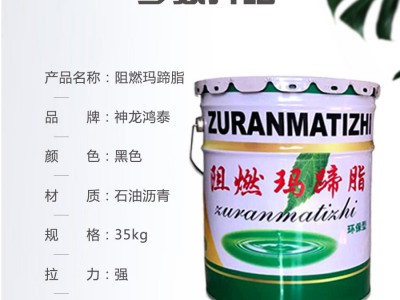 黑色阻燃玛蹄脂是采用石油沥青为基料,采用化学黏结剂、成膜剂、增稠剂 和矿物填料、加入适量阻燃剂制成。阻燃玛蹄脂具有气密性、防水性、防冻性、不易开裂老化、常温下可以冷施工、干燥后具有阻燃防水等特点。用于保温保冷层表面作防潮层, 与水泥、泡沫玻璃 、硬质微孔硅酸钙、聚氨脂泡沫等配套使用的外层保护物料 。阻燃玛蹄脂广泛应用于石油、化工、纺织、医药等行业。